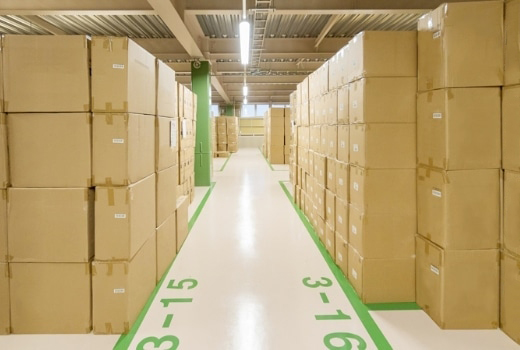 国内、海外で生産された商品を、欠品のないように11,600坪の倉庫で在庫管理しています。