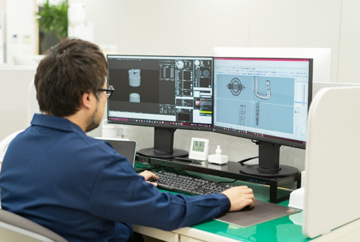 イラストや3DCADを用いて本体のデザインを設計します。実際の大きさのサンプルを作って使い心地を検証したり、理想の色になるまで何度も製造メーカーとやり取りをするなど、試行錯誤を繰り返すことで商品の完成度を高めます。