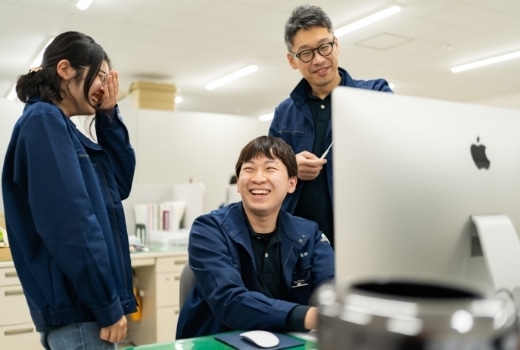 商品開発は同じ目標を持つチームで作業します。同僚と相談し、アイデアを出し合いながら、人々の生活に寄り添った商品をデザインします。